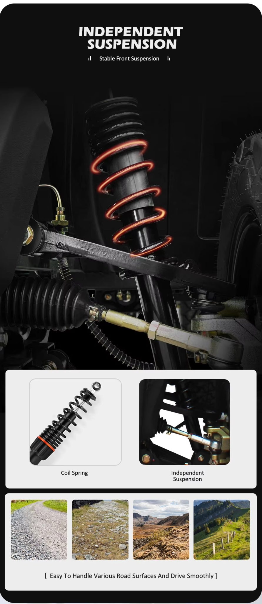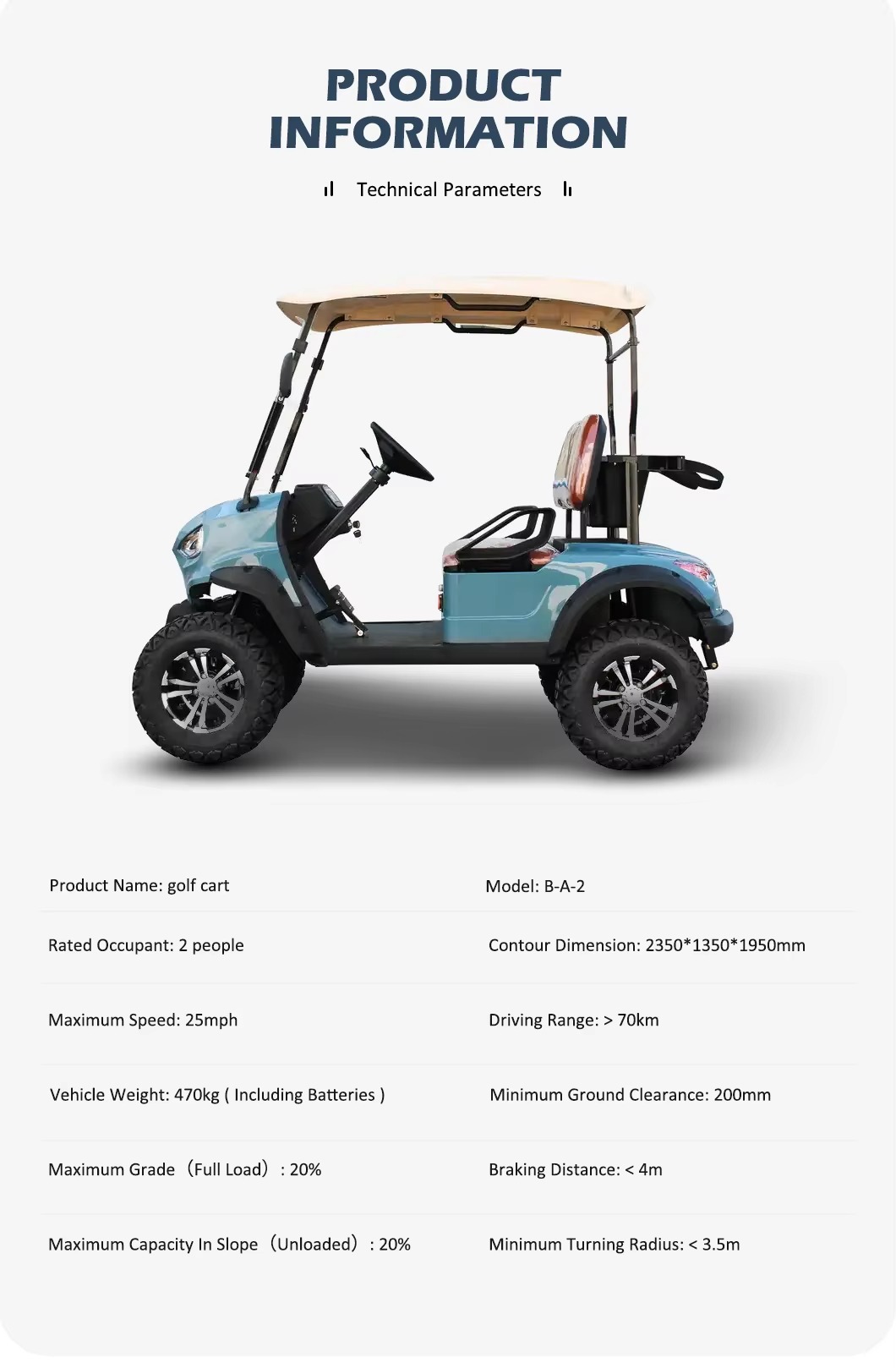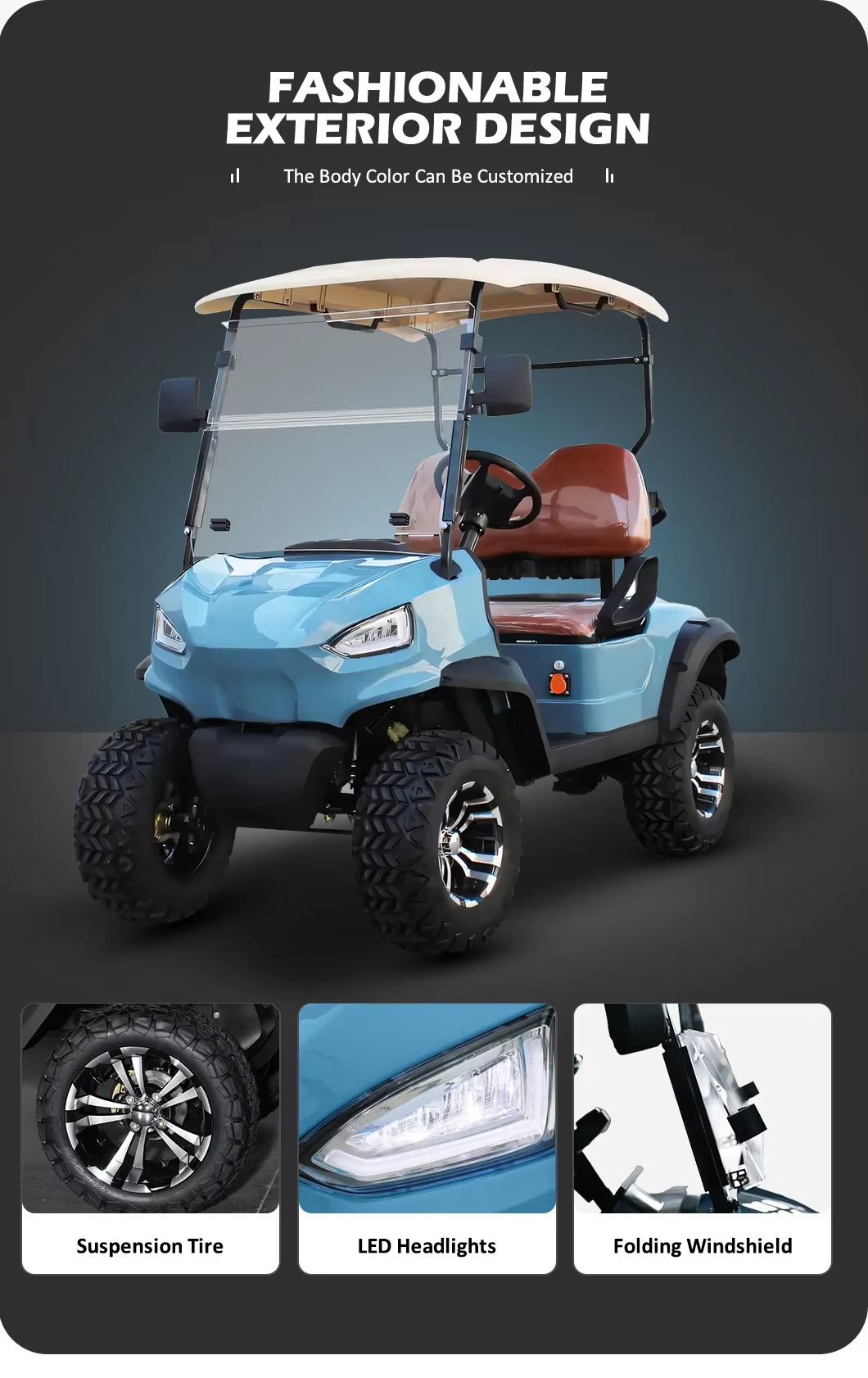 - Off-Road Capability: With its sturdy design and off-road tires, the golf cart can navigate rough terrains and uneven paths with ease, making it ideal for exploring golf courses with varying landscapes.