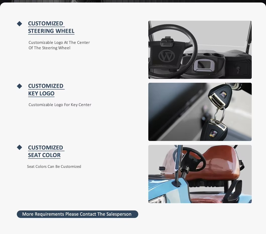 - Street-Legal Compliance: Designed to meet street-legal requirements, the golf cart can be driven on roads and paths designated for low-speed vehicles, providing added versatility and convenience for transportation beyond the golf course.