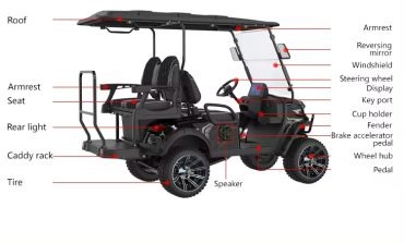 - Spacious & Comfortable Interior: Featuring ample seating for 6 passengers, the golf cart boasts a luxurious interior that ensures a smooth and comfortable ride for everyone, even on long excursions.