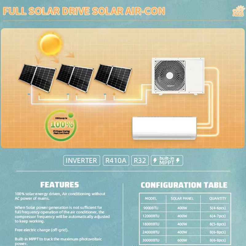 Solar Air Conditioner 18000Btu 24000Btu AC DC Hybrid